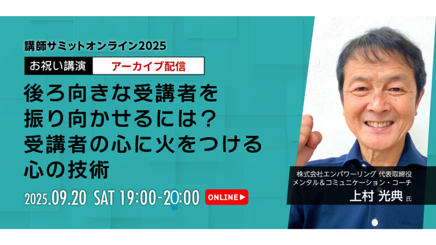【動画】講師サミット2025/後ろ向きな受講者を振り向かせるには?受講者の心に火をつける心の技術